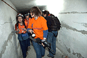 Еще одним необычным этапом явился подвал, или как его еще называют - бомбоубежище. Несколько метров под землей, температура ноль градусов, вода вперемешку со льдом – по щиколотку. Освещая путь фонариками пробираемся в глубь, почти в слепую стреляем в светящиеся мишени, затем в лабиринтах коридоров и комнат ищем три КП.