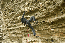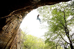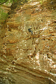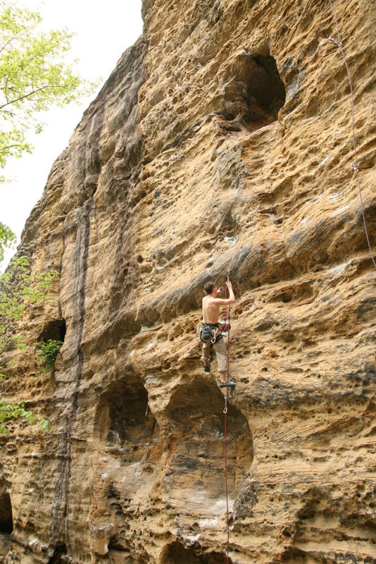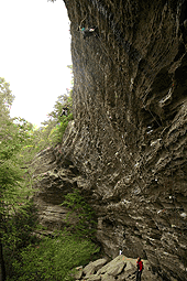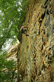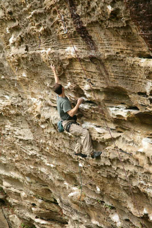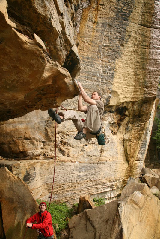 Кен (знакомый Кости и Лены из Кливленда) падает с Tissue Tiger. Фота слишком повернута. Нависания поэтому не видно. Висит сильно |