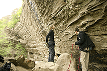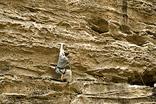 В воскресенье пошли на Military Wall. На сей раз размялись на 6c+, Fuzzy Undercling - трасса с боулдеринговым началом и нависающим продолжением по большим ручкам. Про нее сказано, что если был в Ред и не пролез Фаззи, то ты гомик. Мы все пролезли.