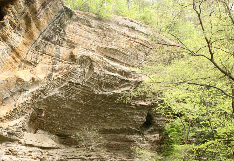 Там где сильно нависает (на заднем плане) сектор Madness Cave, там расположены тяжелые маршруты. Нависание до 45 градусов |