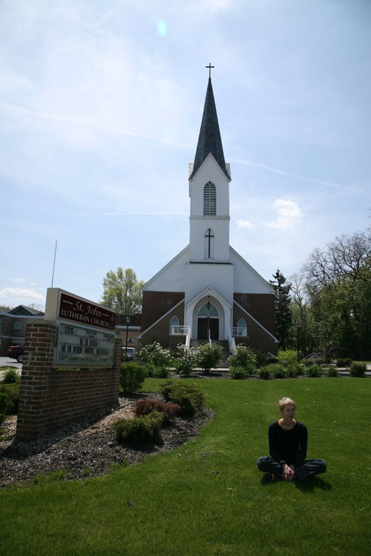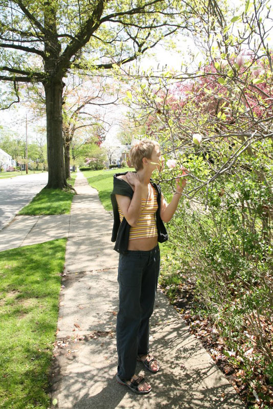 От культурной программы (Лена предлагала посетить, например, музей истории рока) Паша наотрез отказался, поэтому мы просто пошли гулять. Район представляет собой то, что у нас называют одноэтажной Америкой. Небольшие дома стройными рядами. Перед ними традиционные газоны. Кругом цветущие деревья. Фасады можно рассматривать бесконечно. По дубам носятся белки. Все это местами напоминает кадры из диснеевских мультфильмов. Редкие втречные люди улыбаются. Пешком не ходят, почти все ездят на машинах.