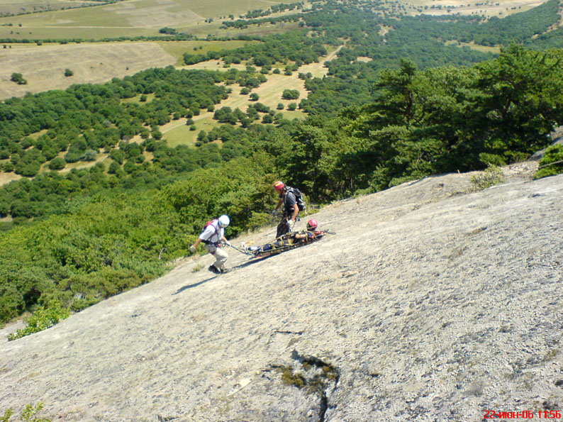 СЕ: Еще не работая в МЧС, мы ходили в горы от нашей Северо - Осетинской Федерации альпинизма. Постепенно у нас сложилась своя небольшая группа постоянного состава. Когда стало организовываться ГКЧС мы фактически в полном составе, будучи 1 разрядниками перешли туда работать и уже как штатные спасатели продолжили спортивный рост. В тот же год выполнили КМСов. Дальше ходили участвуя в Чемпионатах совместной командой Северо- Осетинского ПСО и Федерации альпинизма Северной - Осетии, и к 1999 году трое человек выполнило звание МС. На сегодняшний день в Северо- Осетинском ПСО 4 МС и 4 КМС по альпинизму. На «подходе» еще пару человек под КМСа- им осталось сходить 5 А в двойке.