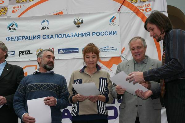 Часть памятных знаков и грамот была вручена ветеранам на церемонии награждения, состоявшейся в рамках финала Российского фестиваля скалолазания 2007 года, прошедшего на международной выставке Лыжный салон.