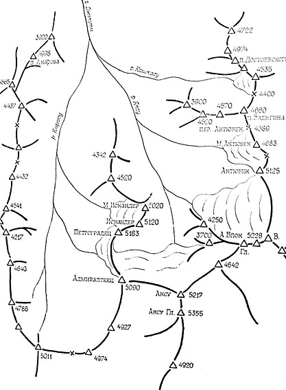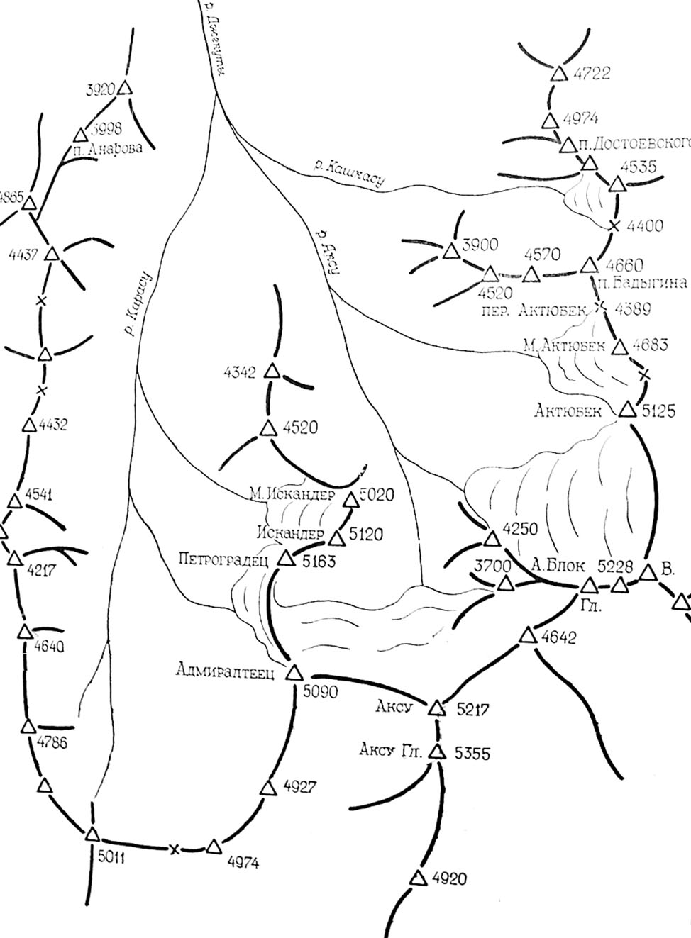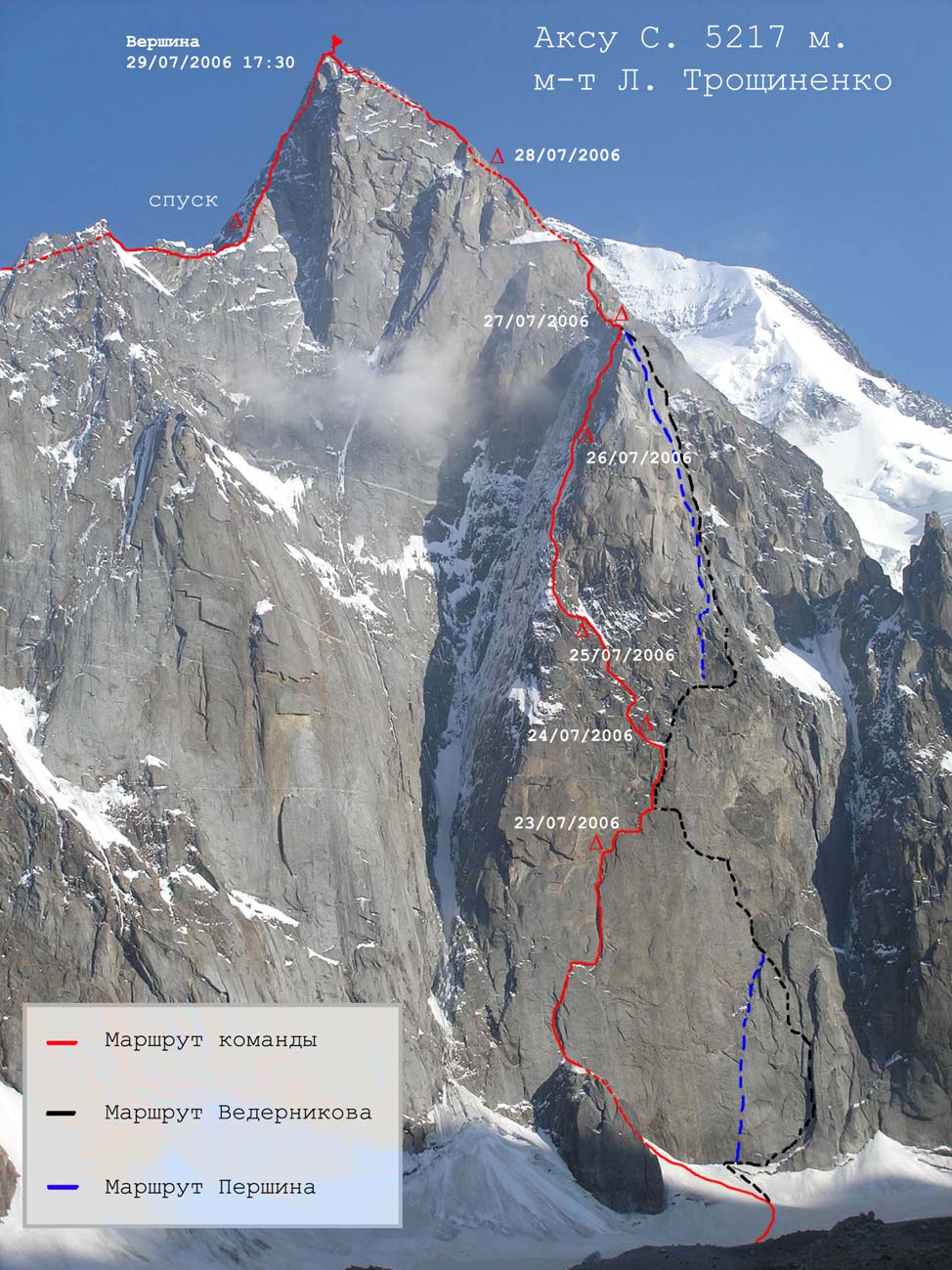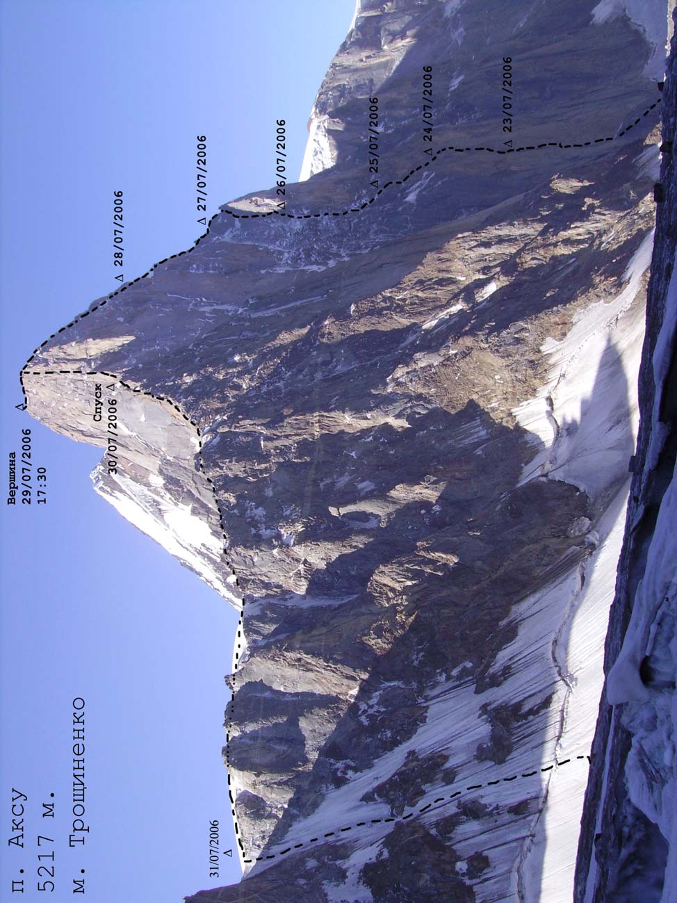 - Аксу С. (5217 м.) по Северной стене, маршрут Л. Трощиненко.