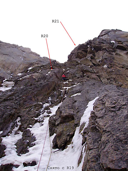 19-20: По разрушенным скалам выход в ледовый кулуар.