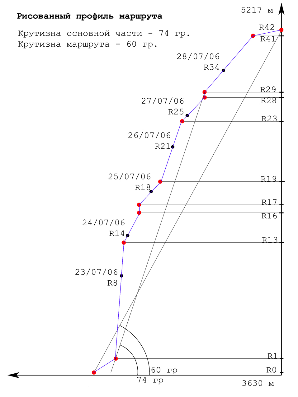 - Ходовых часов команды 89 часов, 7 дней на подъем, 2 дня на спуск.