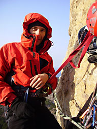 Вообще, Гиперборею за день, по моему ходили только екатеринбуржцы. Поэтому мы расчитываем минимум на пару дней. С вечера решаем, что первый день лезет Марина, а все что останется – полезу я. Из бивачного – традиционно, все по минимуму – один спальник, горелка и чуток еды. Из железа, наоборот, все по максимуму. Хотя мне все же удалось, несмотря на Маринины возмущения, выложить часть крючьев.