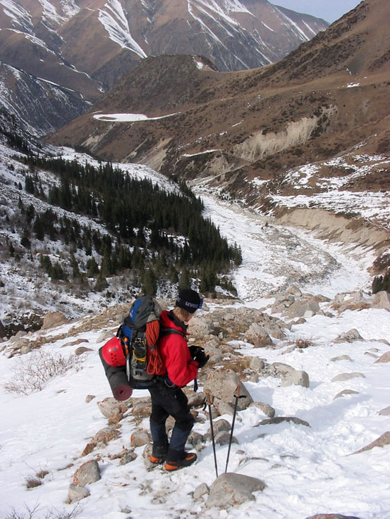 Спустя пару месяцев, вырываюсь на два дня из бесконечных командировок, поездов-самолетов, и чудом оказавшись при этом в Алмате, еду в Алла-Арчу. Внимание! У меня тут настроение изменилось, поэтому щас стиль меняю. Кто не в курсе, Алла-Арча, это такое ущелье рядом с Бишкеком (бывший г. Фрунзе), где есть куча культовых гор, таких как Корона и Свободная Корея. Эти горы... Большие и Крутые. Северные стены. Брр... Эдакая огромная подкова. И ледник там есть. Аксайский. И хижину еще не всю растащили по кирпичикам. А какое у нее название... Хижина «Рацека». Что-то такое в этом... Даже не знаю.. Наверно гоню я – ничего особенного. Но чувак такой был. Рацек. По-моему какой-то то ли альпинист, то ли исследователь. Еще там есть такой пупырь... Рацека. Моим именем горы пока никакие не называли –здесь ему можно позавидовать. Вот такой вот обзор района получился. Но он был бы не полный, если б я не упомянул еще о таком тоже то ли пике то ли горе (интересно, что круче, гора или пик?) – Байчечекей. Я название запомнил не с первого раза. Так что, если у вас тоже не сразу получится – не расстраивайтесь.