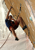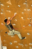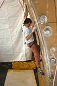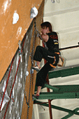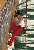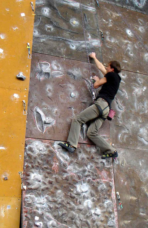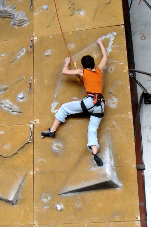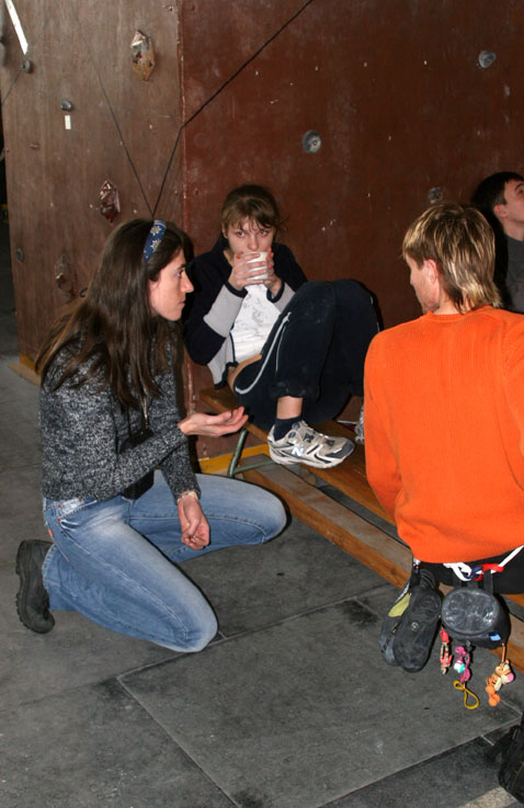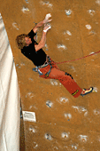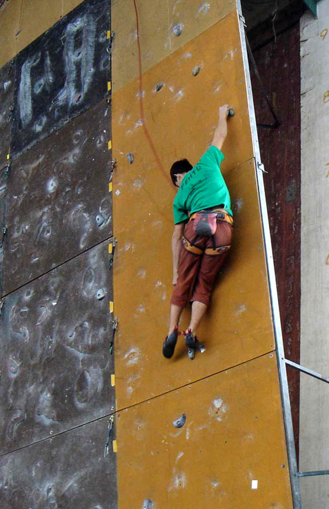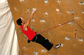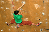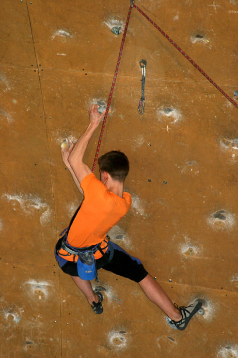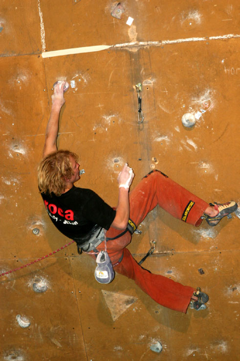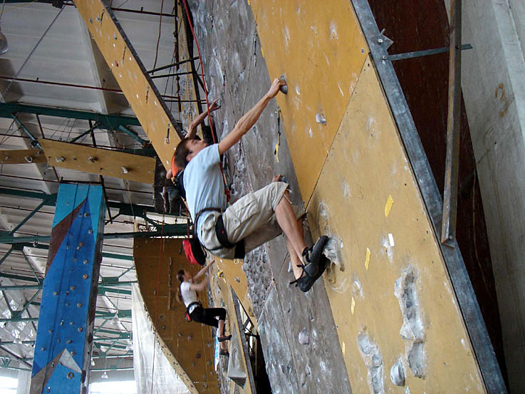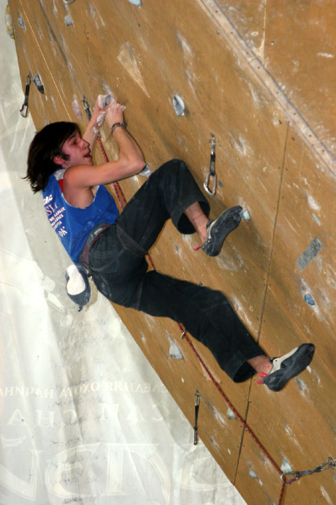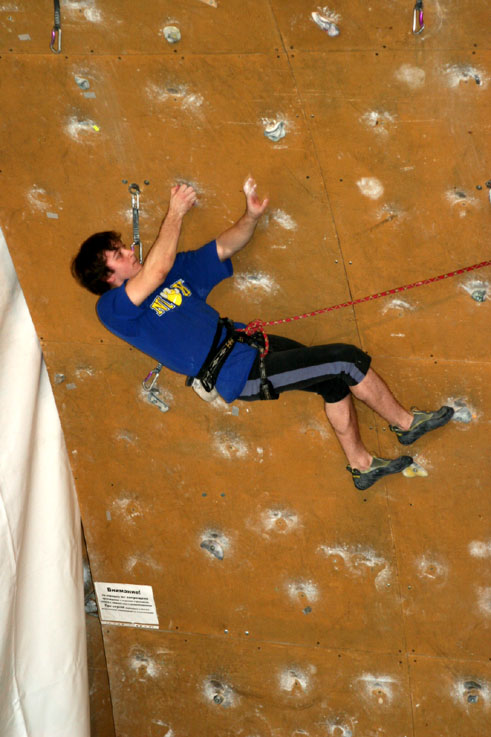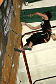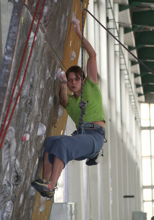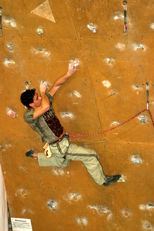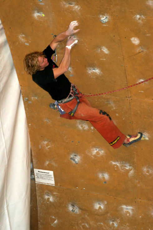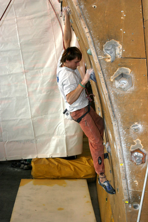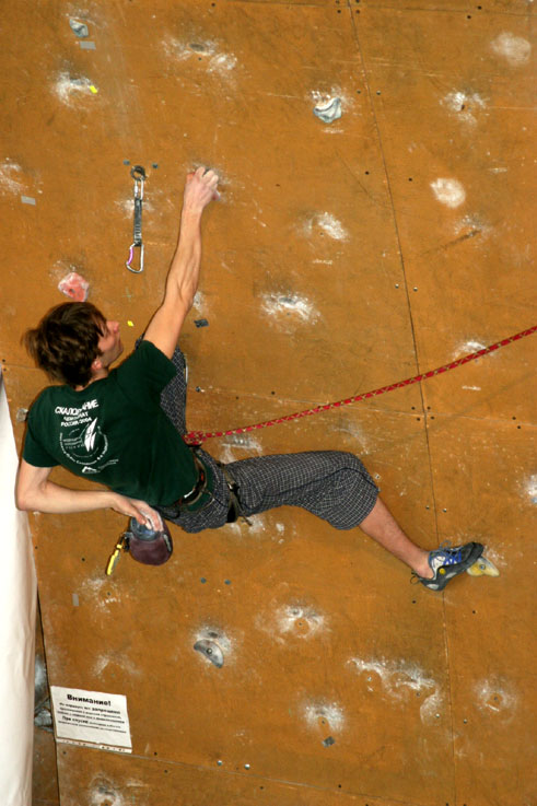 В женском финале уверенно лидировала Лена Ковалева, которая без видимого напряжения пробежала участок, где сорвались ее соперницы. Она единственная сделала Топ. Из мужского финала Густав сотворил настоящий шедевр, заставив изрядно попотеть правдами и неправдами попавших туда финалистов. Впечатляющим было выступление Стаса Поплавского, который сделал единственный Топ. Надо будет выведать у Стаса его таинственную методику громкого дыхания, синхронизированного с тяжелейшими перехватами:) Суперфиналы не потребовались, так что закончили рано, часов в пять вечера. Завтра скорость!
