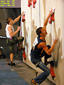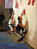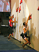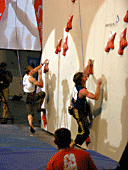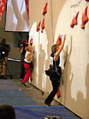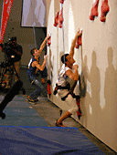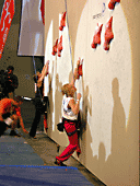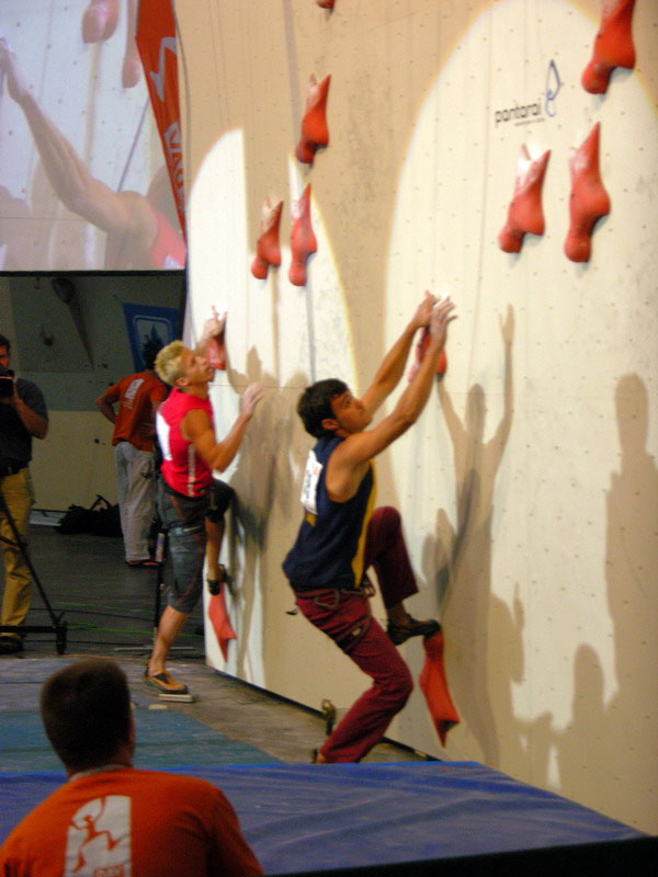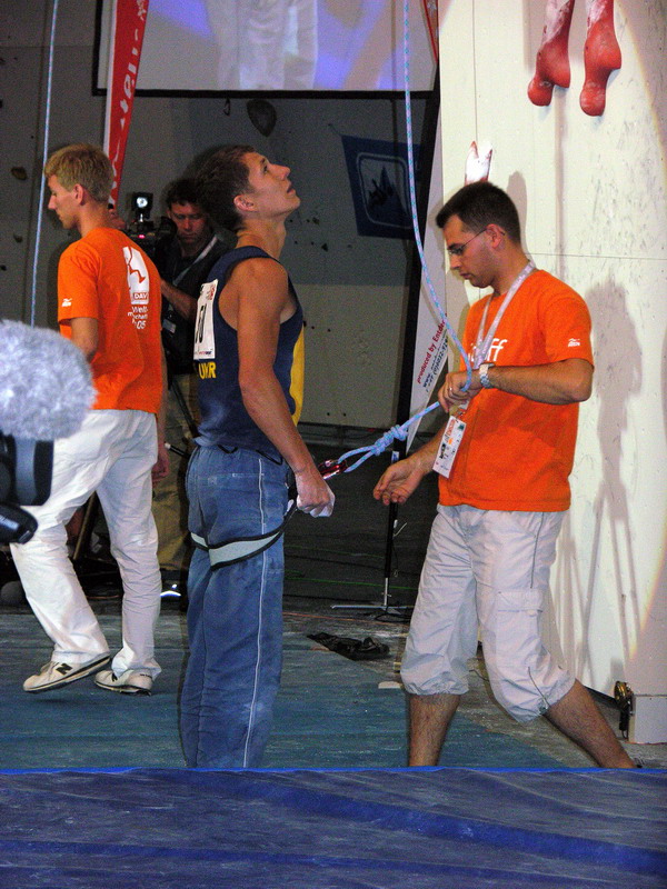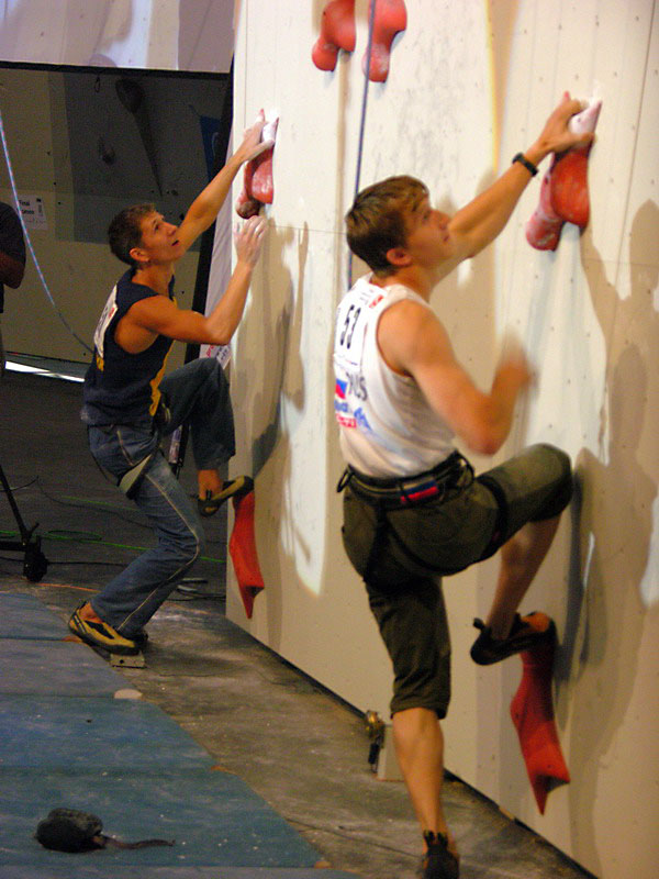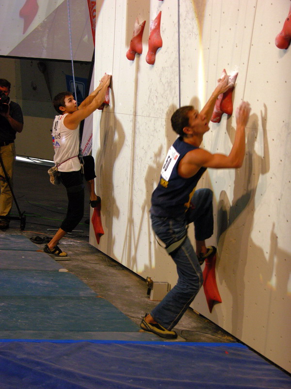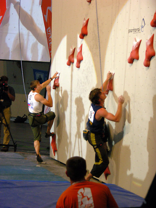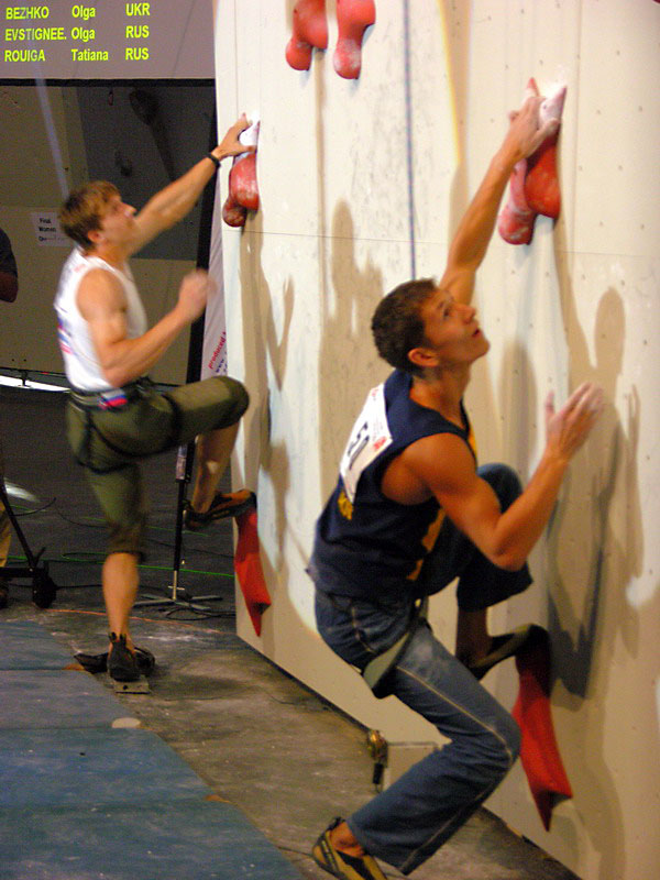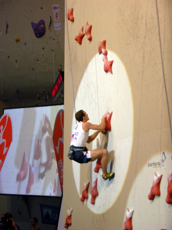 Ниже представлены фотографии из Мюнхена (супер-пупер эксклюзив, интересный также для любителей древности :) По идее, именно эта стенка может быть эталонной. Эти конструкции (как и стенд на сложность) перевозят из страны в страну и собирают на месте непосредственно перед соревнованиями... А зацепы - "головастики", впечатляют!