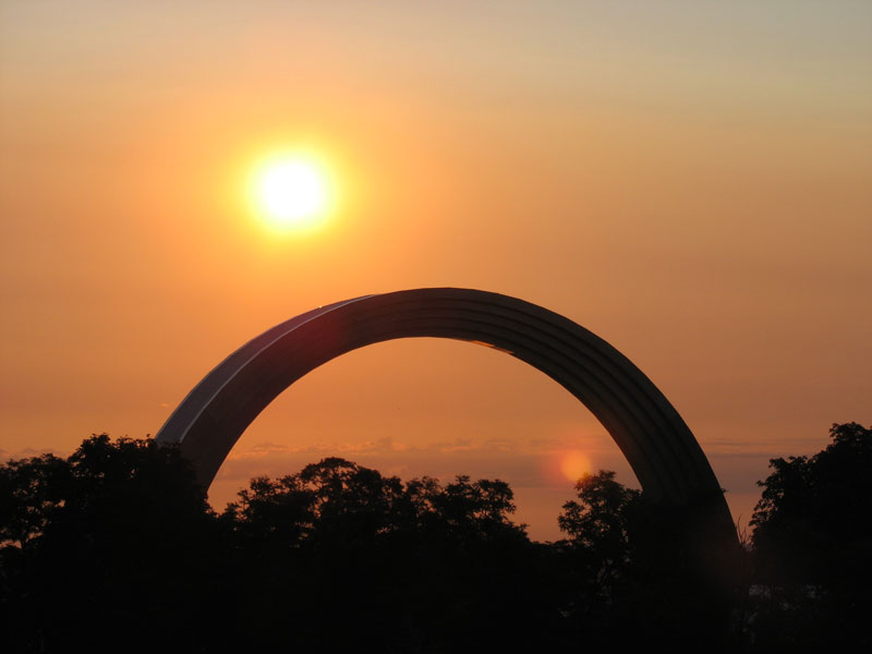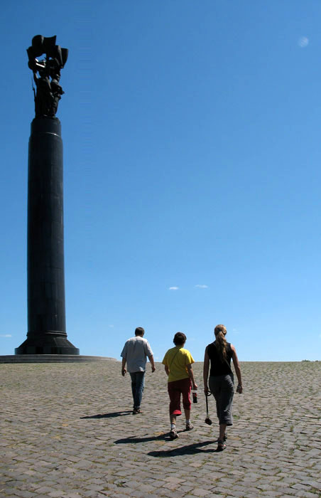 В половине седьмого утра по местному времени наш поезд прибывает в Киев. На перроне встречаемся с Тарасом, грузимся в его «гольф». Тарас предлагает провести ускоренную экскурсию по центру Киева. Проезжаем по Крещатику, выходим посмотреть на Майдан Незалежности. Весь майдан заставлен палатками «политических туристов». Похоже, теперь это традиционный способ выражения своих политических взглядов на Украине. Палатки, конечно, штука забавная. Хотя мне гораздо больше понравился Софийский собор.