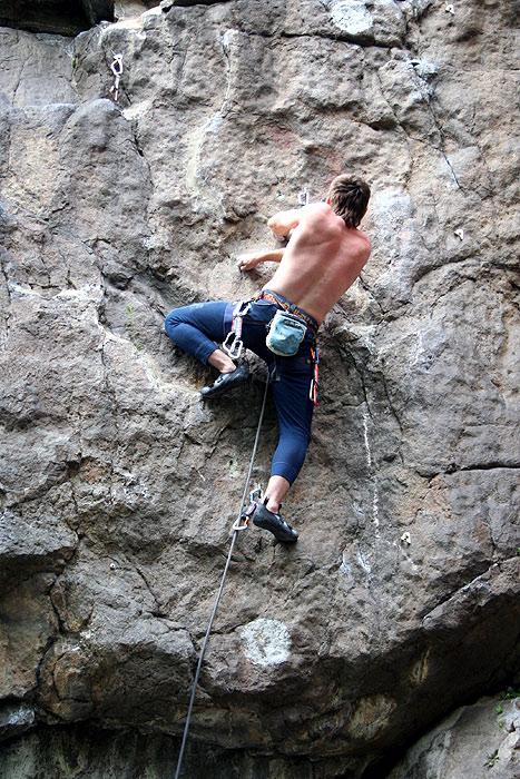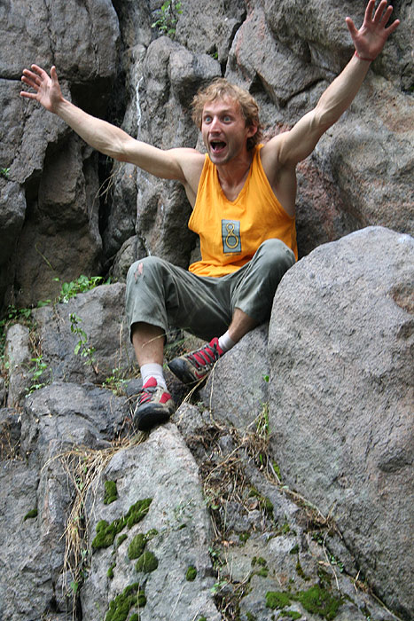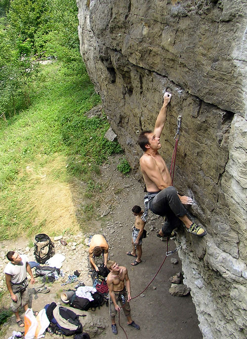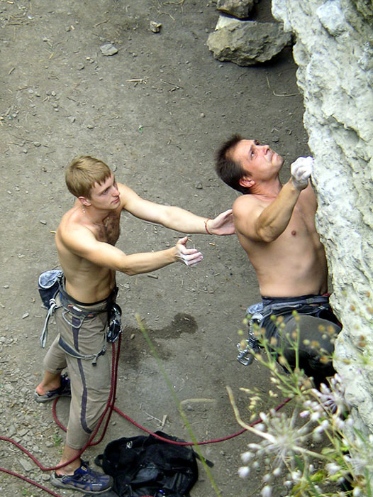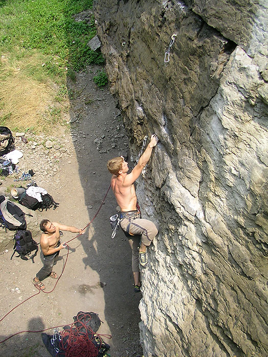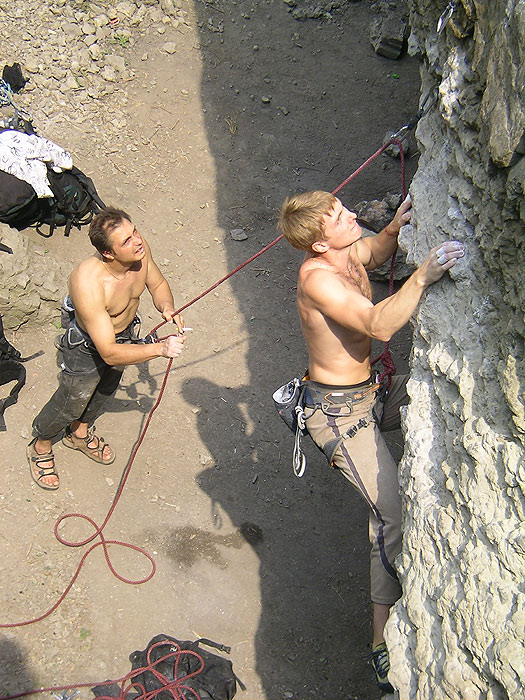 На следующий день в два часа нас должен был забрать Василий, наш водитель. Утром полазили еще раз. Собрать 7b мне так и не удалось. Зато порадовал Вано: гарный хлопец вылез свою первую семерку, Безпорадний. Вторая тоже не заставила себя долго ждать. С чем его и поздравляем. Даешь 7b! :)