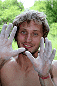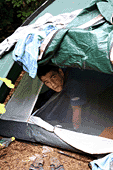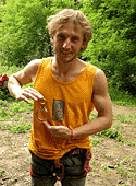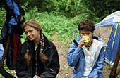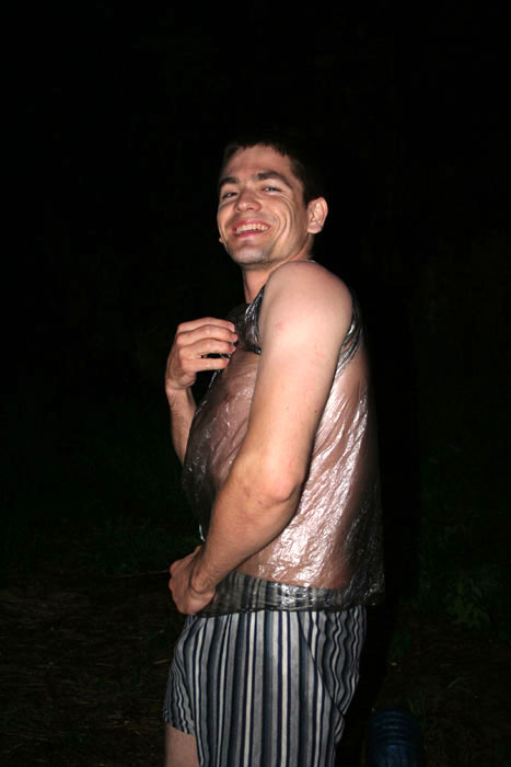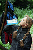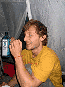 Тем временем стала портиться погода, наступил обед, собрались и уехали киевляне, вдарила нехилая такая гроза, позвонил Ярик и сказал, что нужно их встретить. Я напялил сандалии и пошел в ближайшую деревню за Яриком, Иринкой и Анчуткой, а Сахо остался держать оборону, копая под дождем маленькой палочкой здоровенный водоотводяший ров вокруг палатки.:)