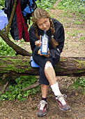 Пока мы с Сахо наслаждались всеми этими потрясающими маршрутами, остальные камрады слегка расслабились. Анчутка, к сожалению, не могла лазить из-за ноги. Стоически перенести этот тяжелейший удар судьбы ей помогала все та же старая добрая голубая бутылка.
