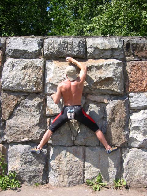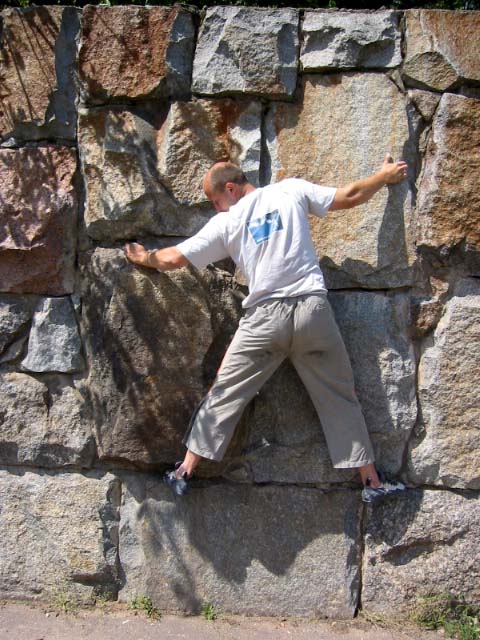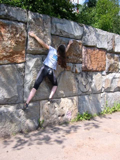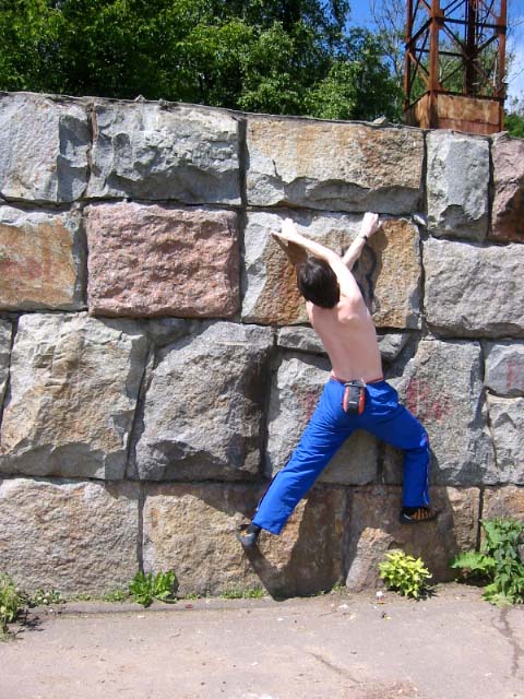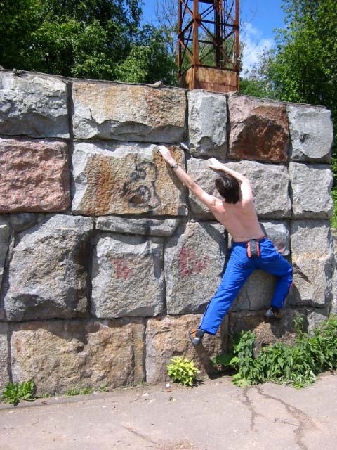 - а Московским скалолазам редко выпадает полазать по такой породе. Вокруг